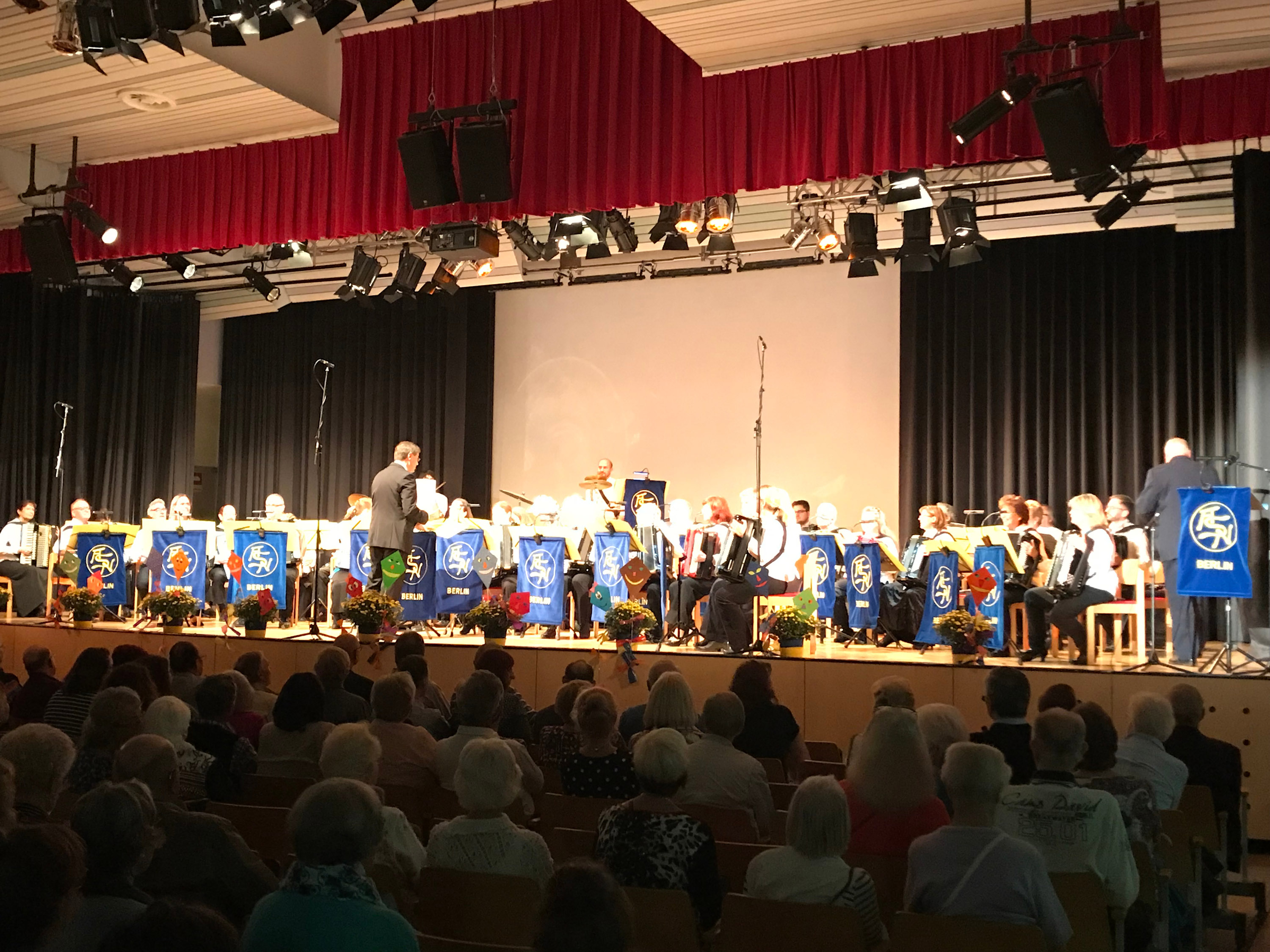 Bei über 30 Grad Celsius gab das Akkordeonorchester ASN-Berlin e.V. sein Herbstkonzert im Großen Saal des Gemeinschaftshaus Gropiusstadt.