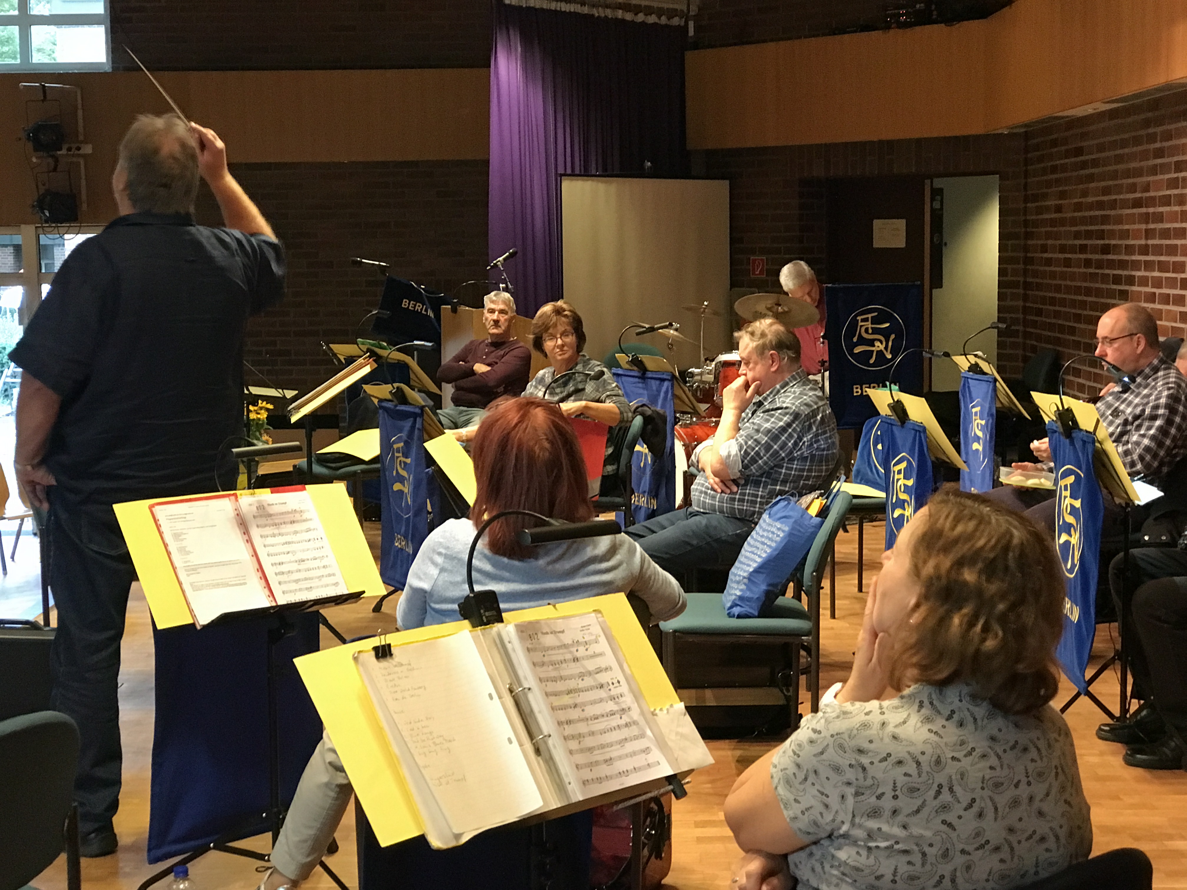 Auch unser Dirigent Detlev Klatt schreibt immer wieder Bearbeitungen für unser Orchester. „Sing, sing, sing“ wurde im Jahr 1936 von Louis Prima komponiert, in der Jazzszene aber besonders bekannt durch Benny Goodman. Unser Schlagzeuger Lukas wurde hier besonders gefordert, die Zuhörer tobten und spendeten ihm lang anhaltenden Beifall. Erschöpft, aber fröhlich spielten wir sogar noch eine 3. Zugabe.